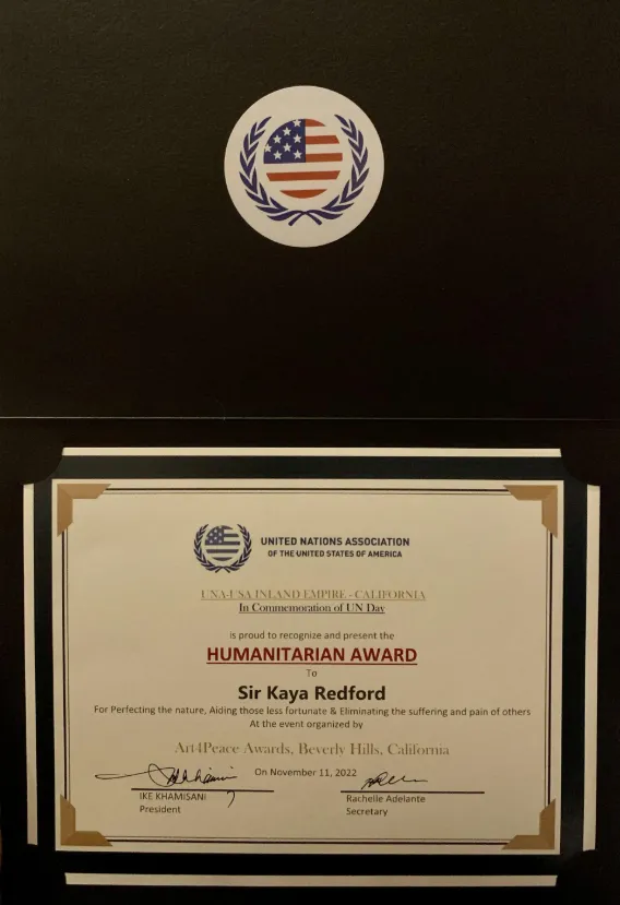 The UNITED NATIONS is Proud to Recognize & Present the Humanitarian Award to Sir Kaya Redford.